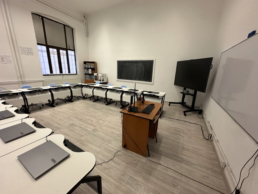 Laboratorul inteligent este echipat cu tehnologii de ultimă generație, menite să sprijine un proces educațional modern, interactiv și orientat spre viitor. Elevii au la dispoziție laptopuri performante, care facilitează accesul la resurse digitale și aplicații educaționale adaptate nevoilor actuale.