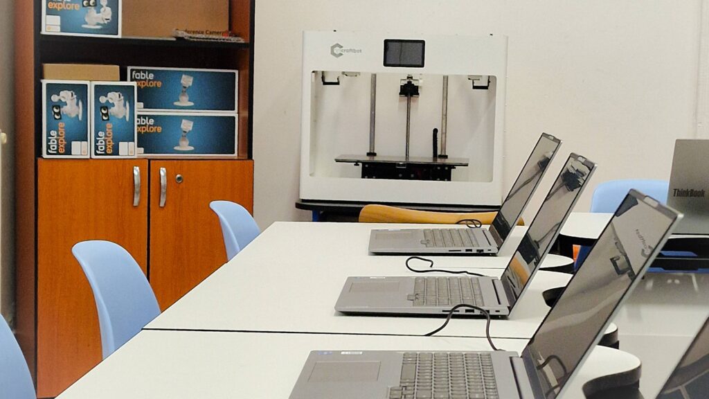 Tabla interactivă și imprimanta 3D contribuie la stimularea creativității și a gândirii aplicate, oferind posibilitatea de a vizualiza și concretiza concepte abstracte. În plus, elevii pot experimenta medii și scenarii variate cu ajutorul ochelarilor de realitate virtuală și augmentată (VR/AR), instrumente esențiale pentru învățarea experimentală.