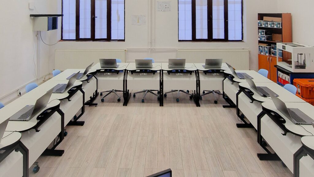 Întregul spațiu este completat de mobilier ergonomic și adaptat, alături de alte resurse digitale performante, menite să creeze un mediu de învățare flexibil, interactiv și incluziv.